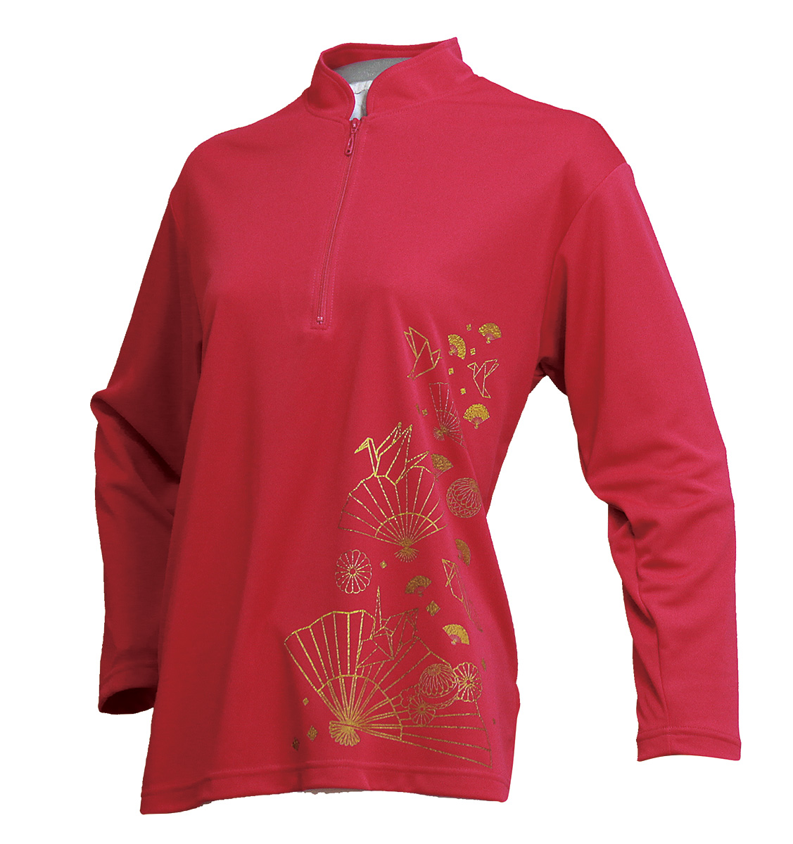セオフレッシュチャイナカラー長袖シャツ(Sピンク/折り鶴)