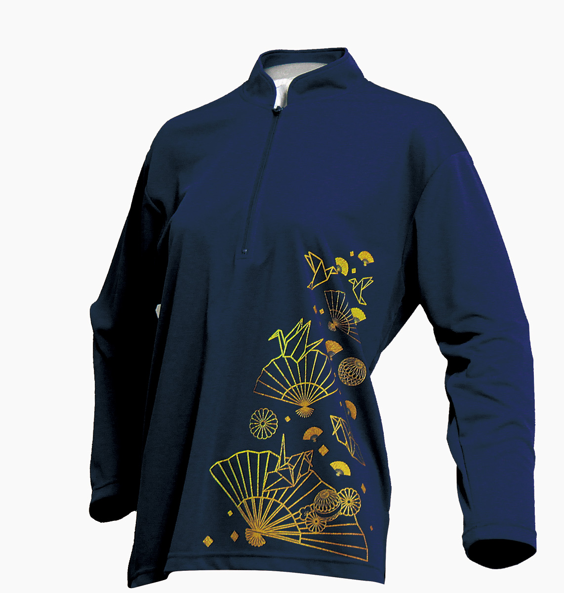 セオフレッシュチャイナカラー長袖シャツ(マリンブルー/折り鶴)