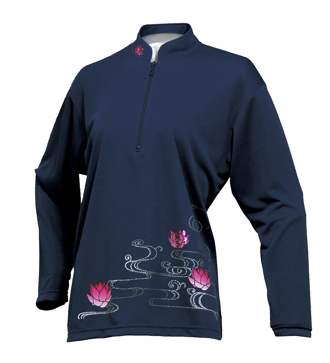 セオフレッシュチャイナカラー長袖シャツ(マリンブルー/睡蓮)