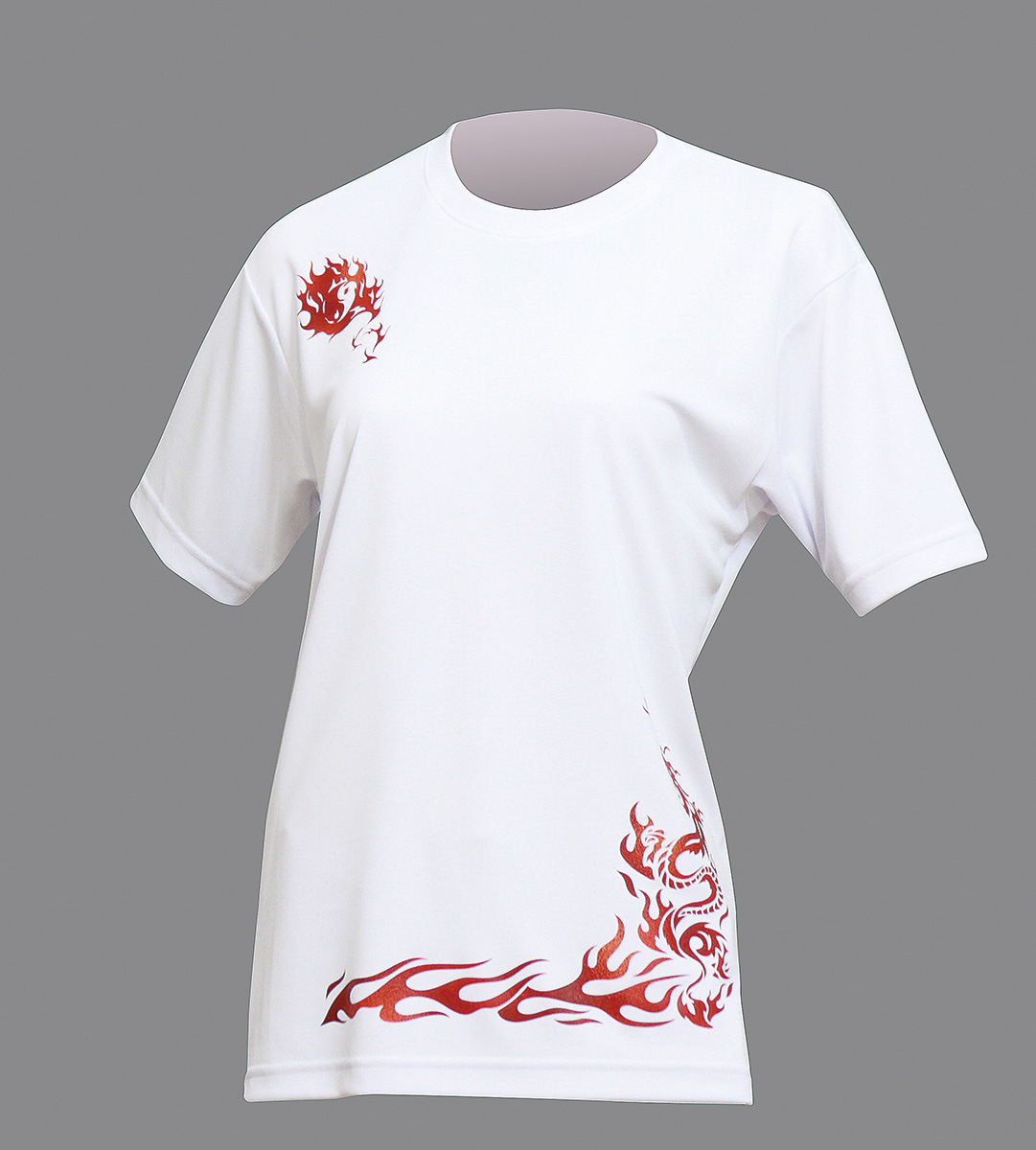 セオフレッシュ丸首半袖シャツ(ホワイト×炎龍)
