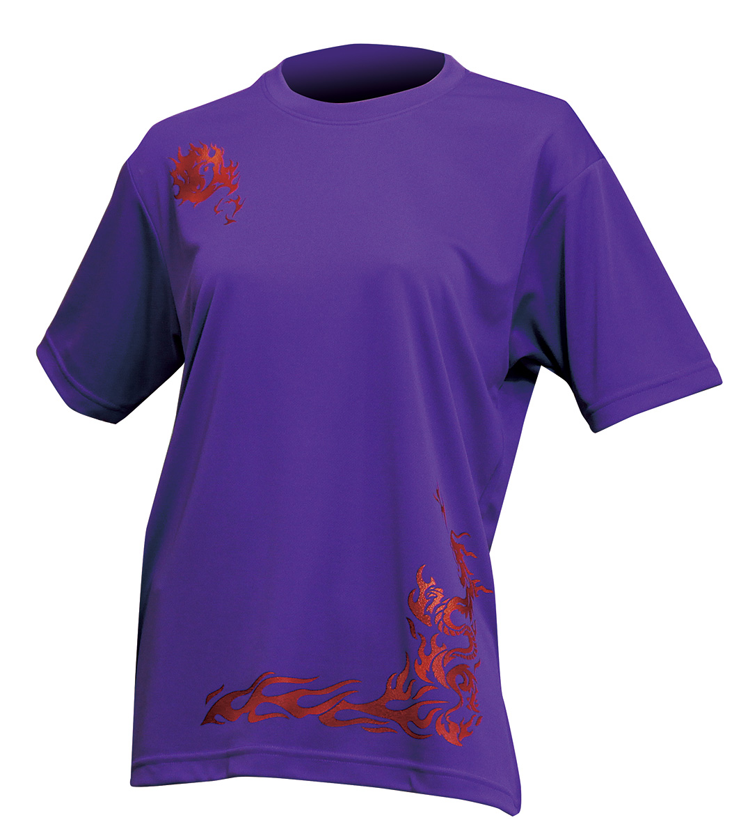 セオフレッシュ丸首半袖シャツ(パープル×炎龍)