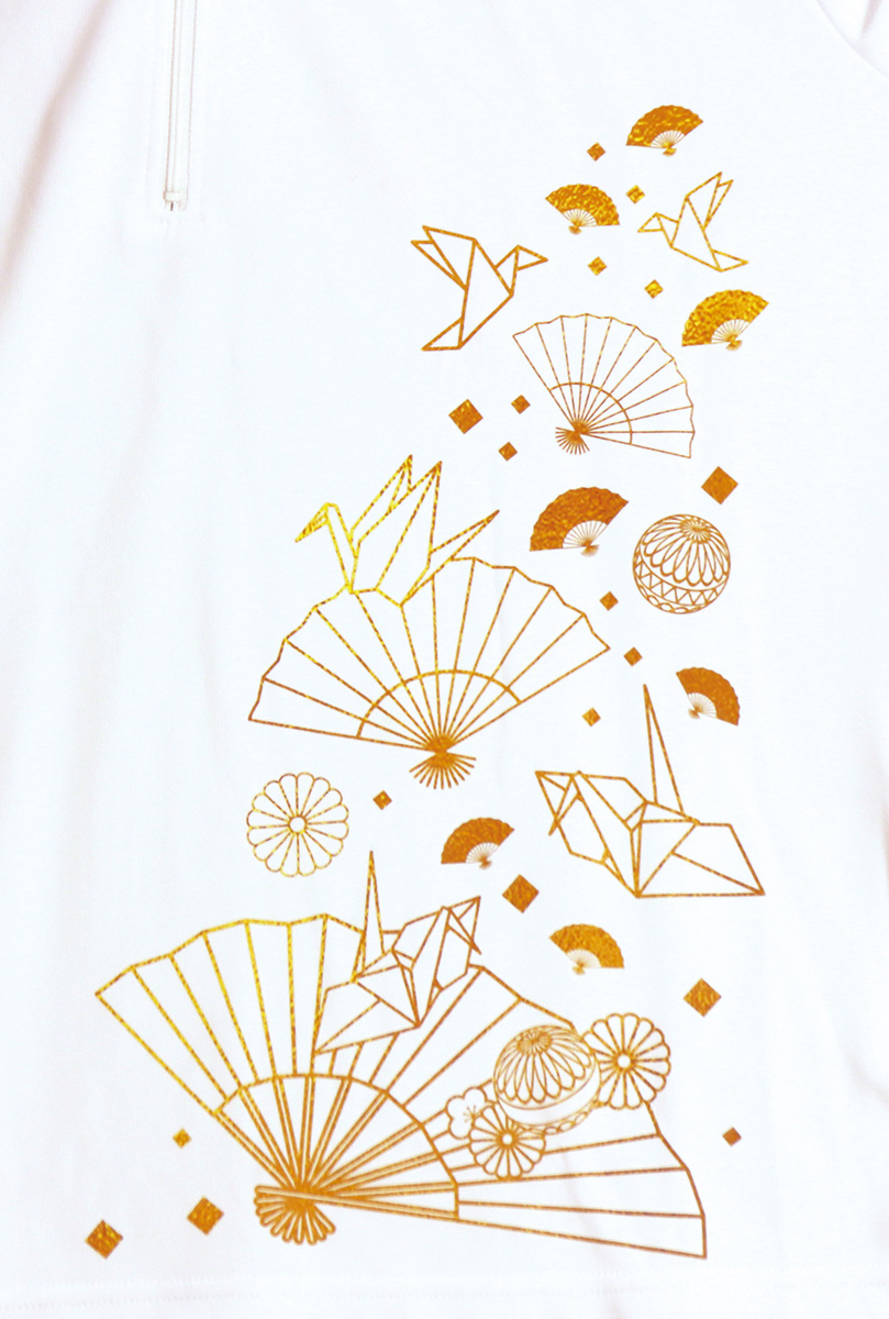 色は、65.ネイビー 左側にゴールドのきらびやかな折り鶴プリント