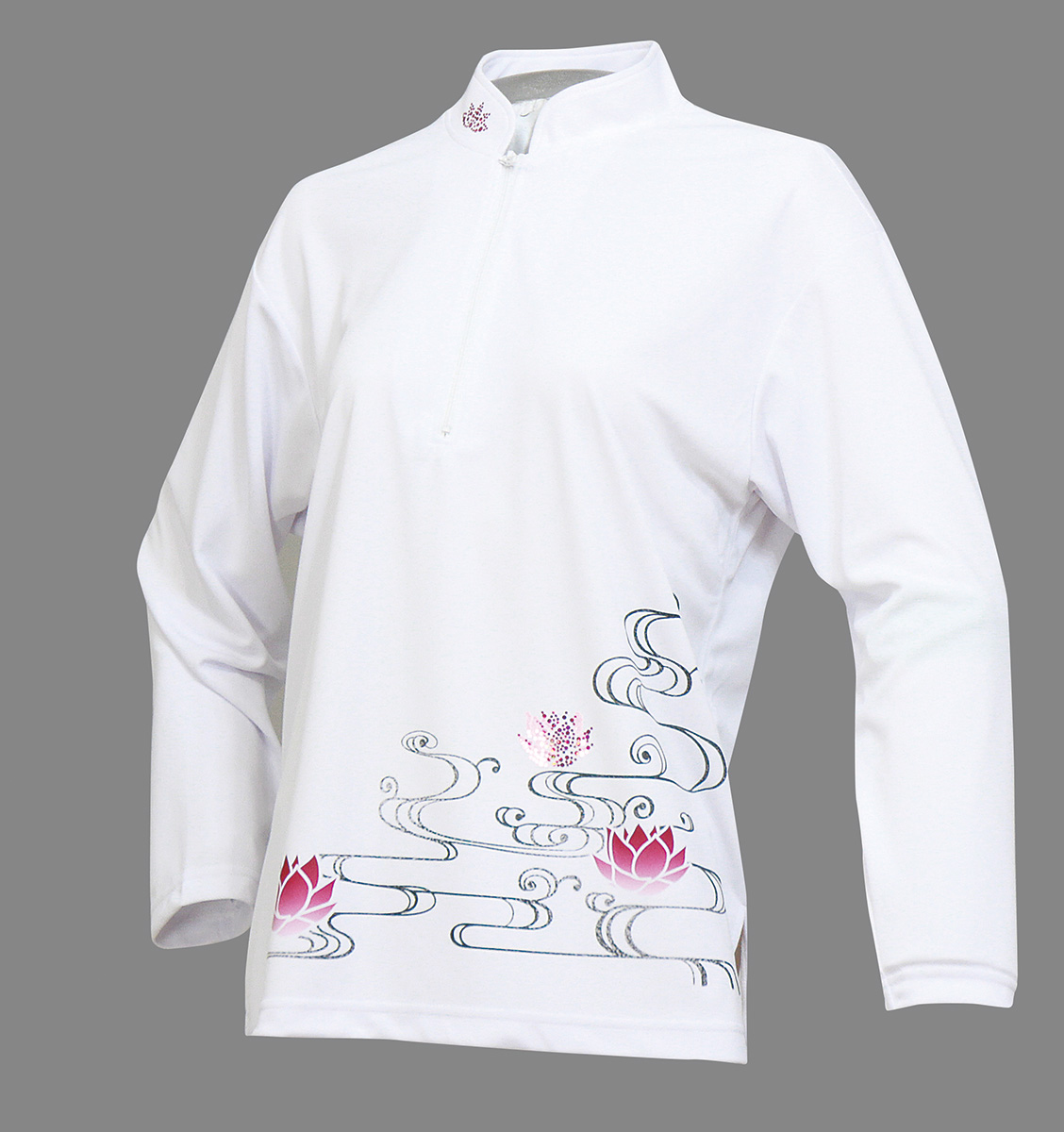 セオフレッシュチャイナカラー長袖シャツ(ホワイト/睡蓮)