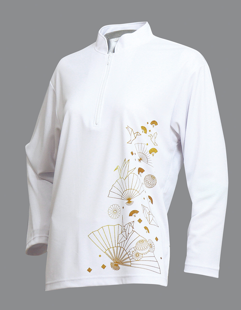 セオフレッシュチャイナカラー長袖シャツ(ホワイト/折り鶴)