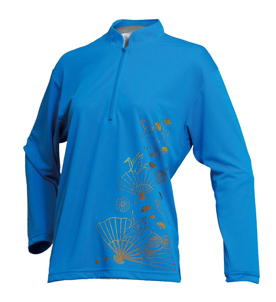セオフレッシュチャイナカラー長袖シャツ(マリンブルー/折り鶴)