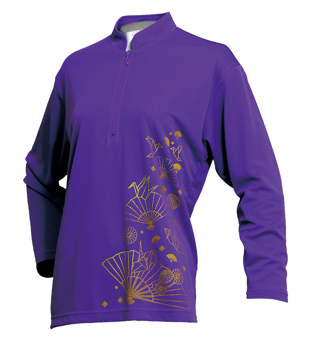 セオフレッシュチャイナカラー長袖シャツ(パープル/折り鶴)