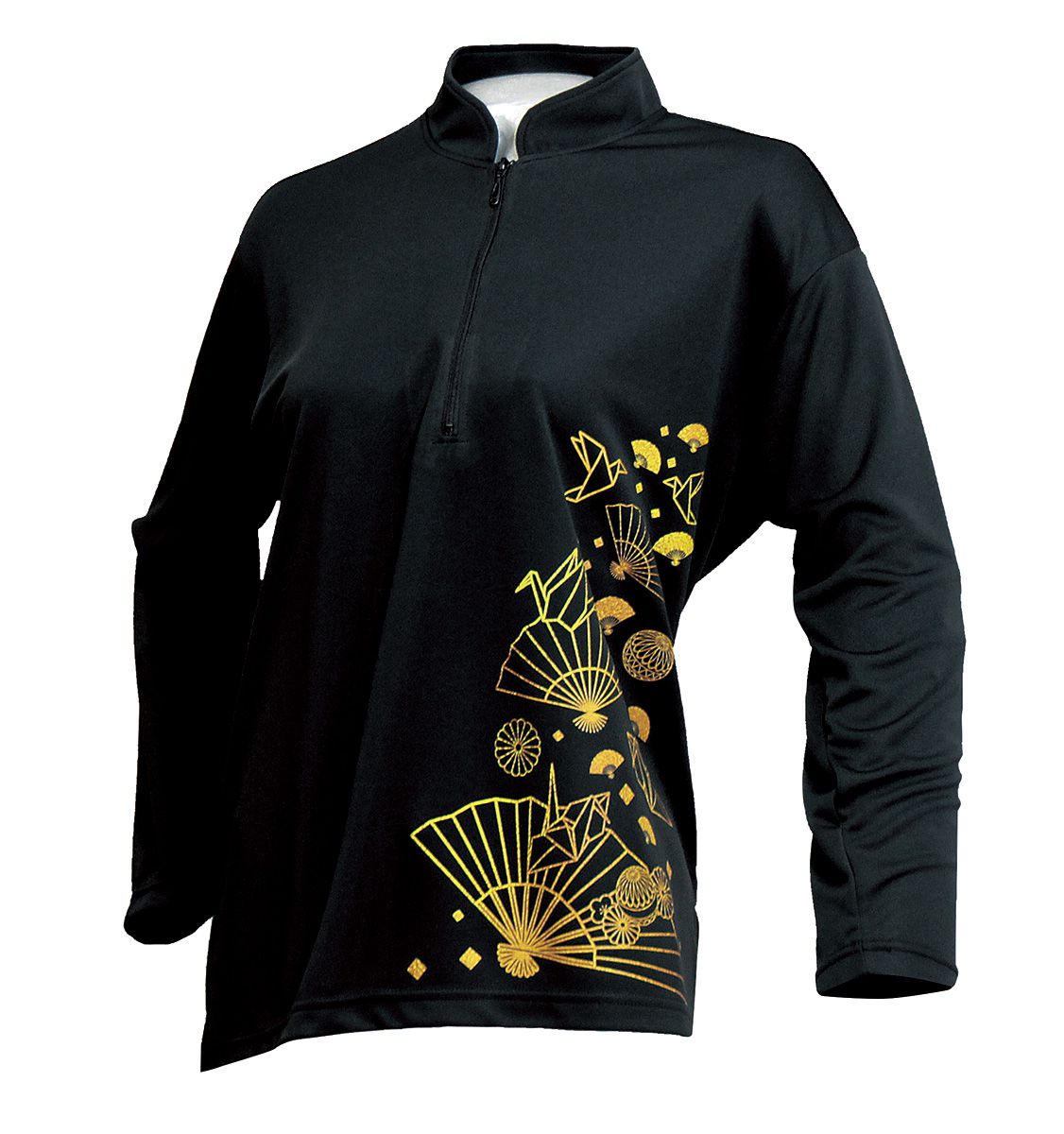 セオフレッシュチャイナカラー長袖シャツ(ブラック/折り鶴)