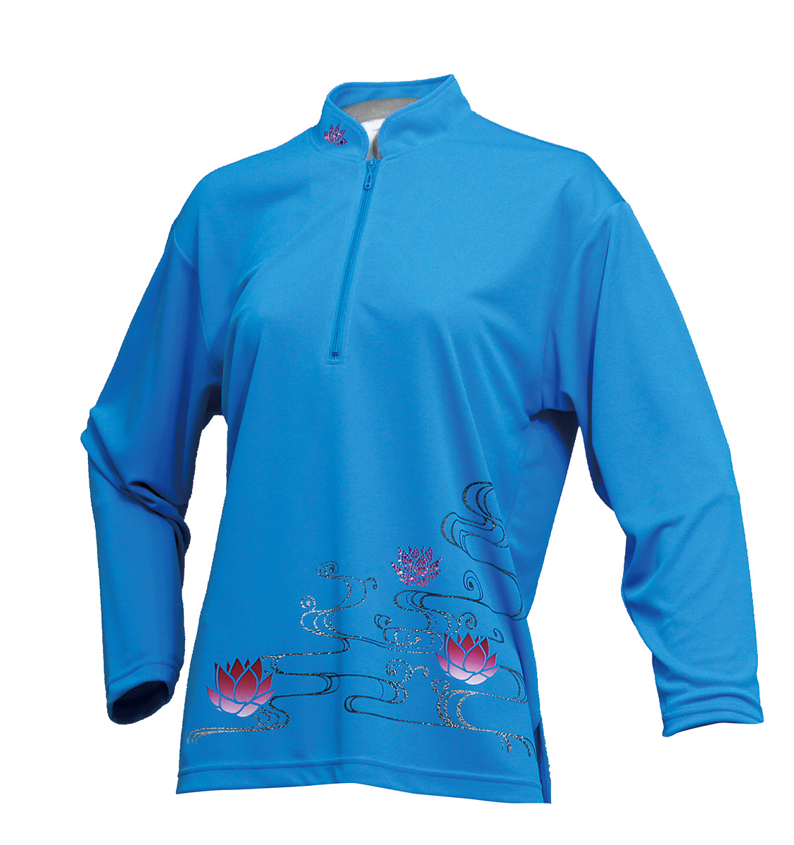 セオフレッシュチャイナカラー長袖シャツ(シアン/クリスタルフラワー)