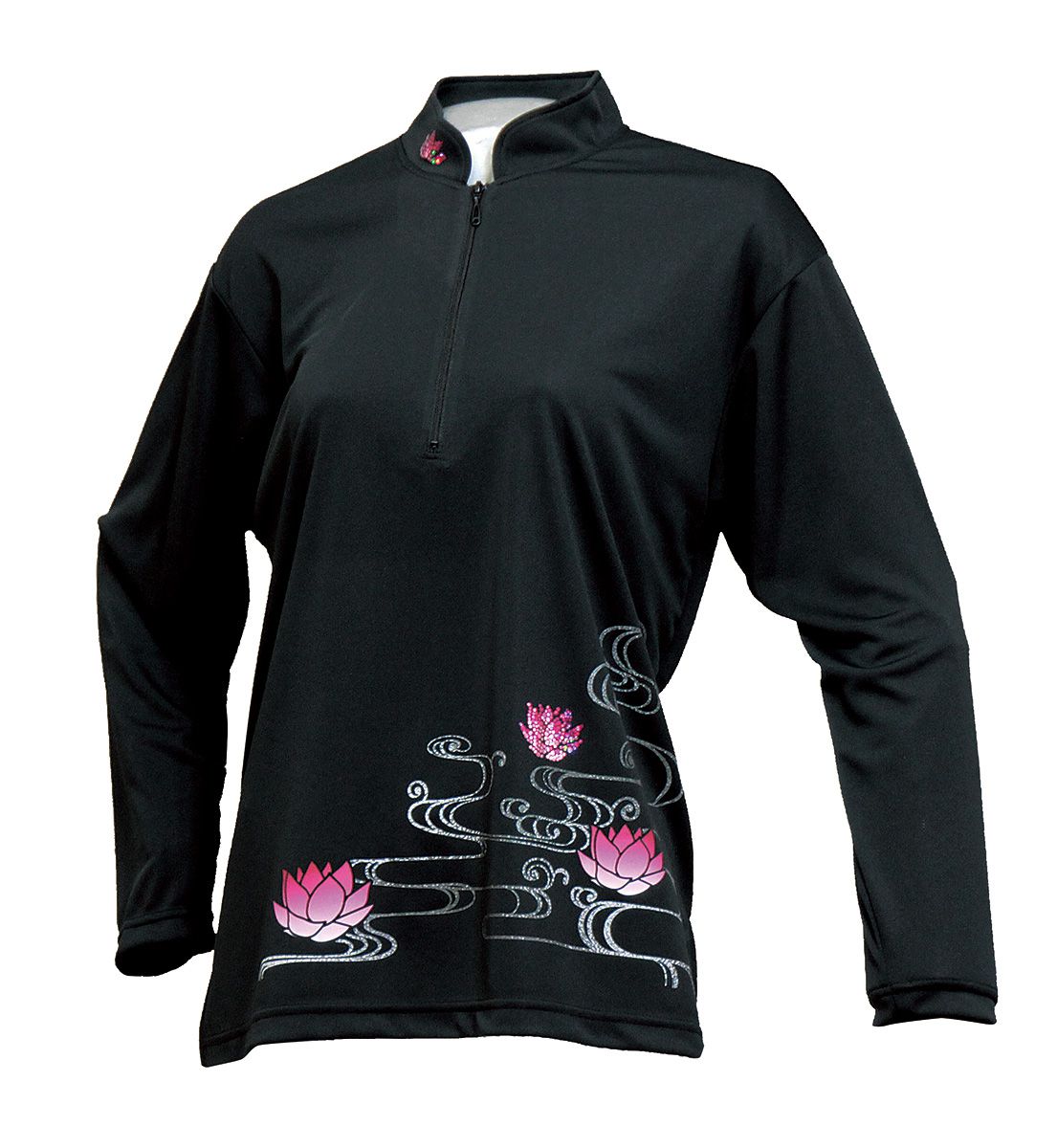 セオフレッシュチャイナカラー長袖シャツ(ブラック/睡蓮)